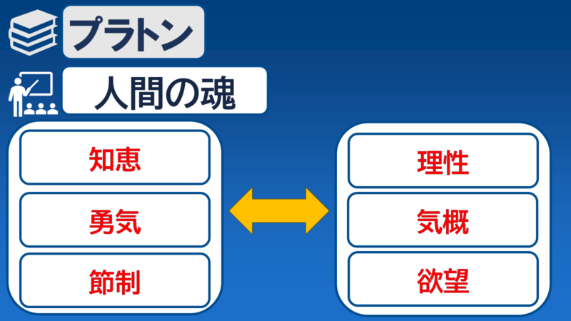 プラトンは人間の魂にも国家と同じ構造があるとしました。