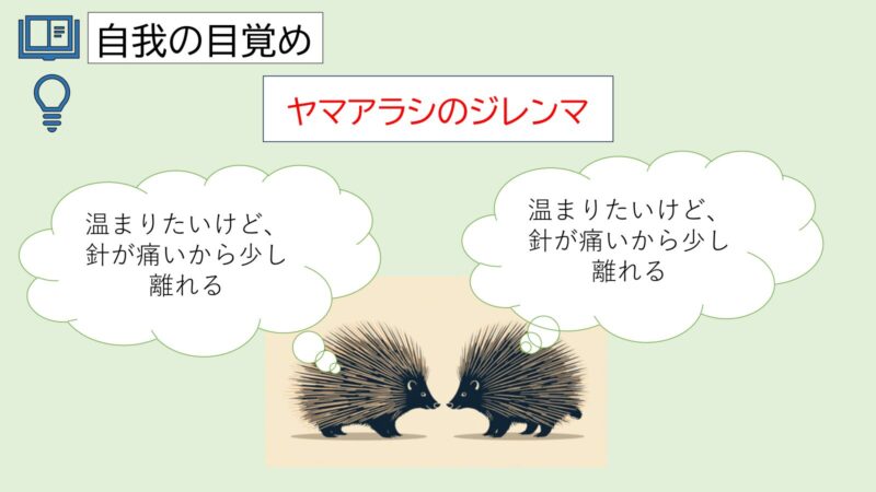 - ヤマアラシのジレンマとは、青年期にみられる友人との絶妙な距離感を示した言葉である